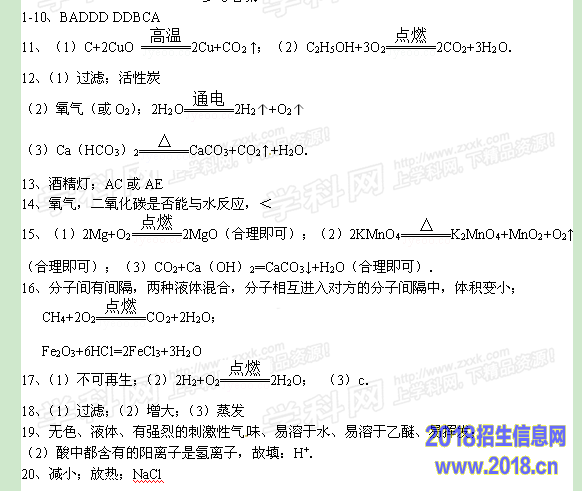 (3)自来水中含有少量Ca(HCO3)2等可溶性化合物,烧水时Ca(HCO3)2发生分解反应,生成难溶性的碳酸钙、水和二氧化碳,这就是壶中出现水垢的原因之一.Ca(HCO3)2受热分解的化学方程式为 .[来源:Zxxk.Com]