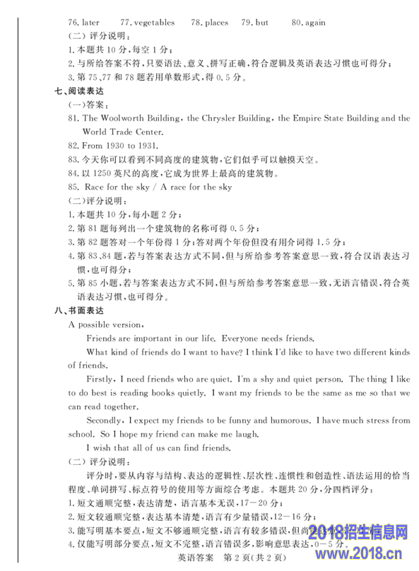 八、书面表达(共1题,计20分)