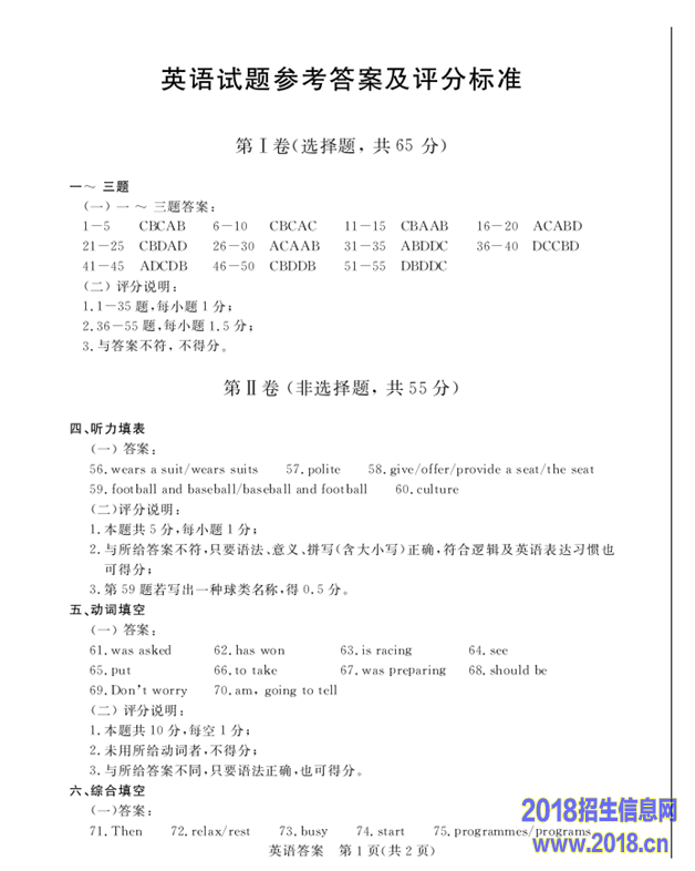 (二)录音中有五组对话,听对话两遍后,从每小题A.B.C中选出能回答所给问题的正