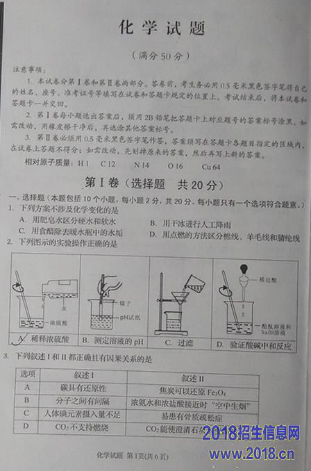 2016年扬州中考化学试题及答案
