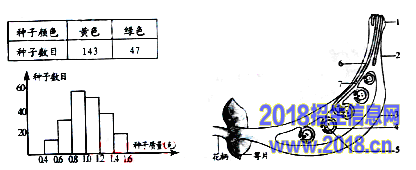 32.(8分)豌豆的种子有绿色和黄色两种,一颗黄色种子萌发成的植株进行自花传粉后产生了190颗种子,这些种子的颜色及质量分别如下表及直方图所示,右图表示豌豆植株的受精过程,请根据图表分析回答: