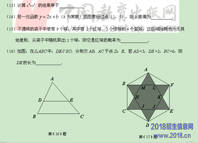 (17)如图,在正六边形ABCDEF中, 连接对角线AC,BD,CE,DF,EA,FB,可以得到一个六角星. 记这些对角线的交点分别为H,I,J,K,L,M,则图中等边三角形共有 个.