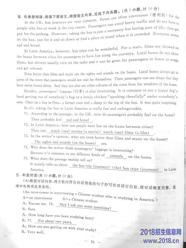 VIII. 任务型阅读:阅读下面短文,根据短文内容,完成下列各题。(共5小题,计10分)