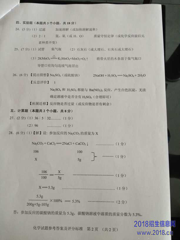 28.(6分)(2015•本溪)50g硝酸钙溶液与56g碳酸钾溶液混合后,恰好完全反应,过滤得到硝酸钾的不饱和溶液101g,反应的化学方程式为Ca(NO3)2+K2CO3═CaCO3↓+2KNO3.