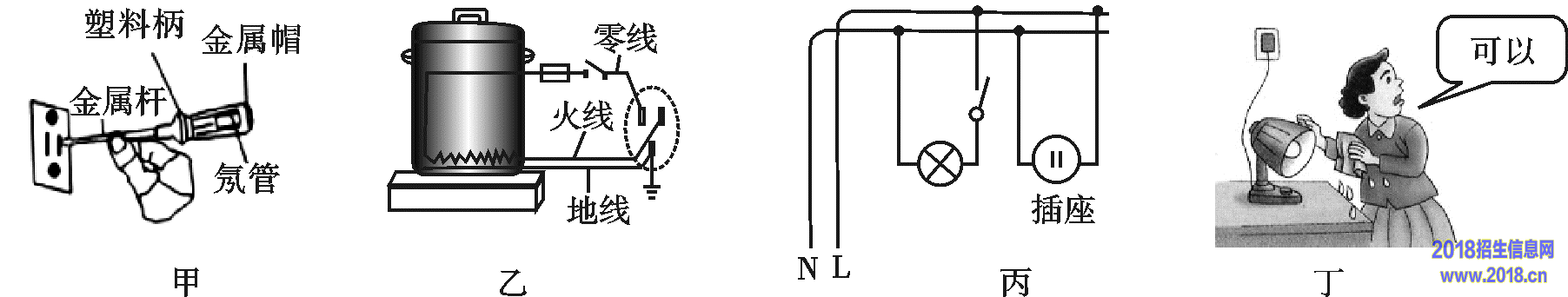 C.丙图中有关家庭用电中电路的连接是错误的 D.丁图中用湿手接触台灯的做法是正确的