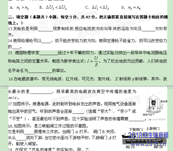 13. 电磁感应 磁场 14. 省力 方向 15. 欧姆 电阻 16. 无线电波