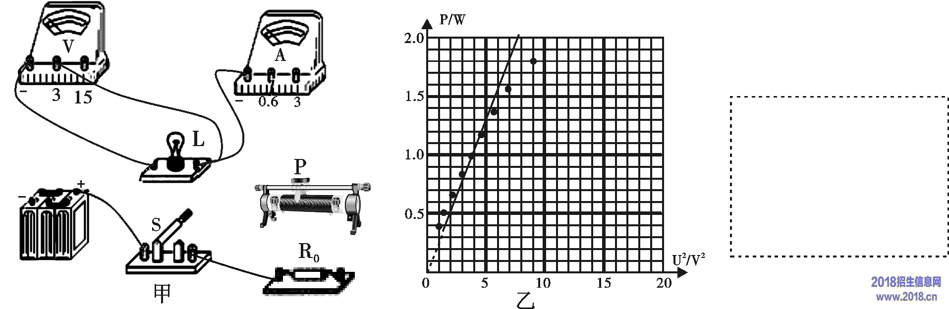 (5)该小组同学在处理实验数据时,将电功率P作为纵坐标,U2作为横坐标,采用描点法,在坐标纸上作出了P-U2图像,并画出该图像是一条直线(如图所示).根据图像,请你指出:所作图像的错误之处是 ;作图时,坐标取值不恰当之处是 。