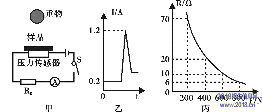 变化的图像如图乙所示,压力传感器的电阻R随压力