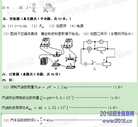 25.(7分)如图所示,是最新一款无人驾驶汽车原型图。汽车自动驾驶时使用雷达传感器,以及激光测距器来了解周围的交通状况。该款车以72km/h的速度在一段平直的公路上匀速行驶了8km时,消耗汽油1.5L。假设燃油完全燃烧,汽油机的效率为30%,那么,在这段运动过程中,求: