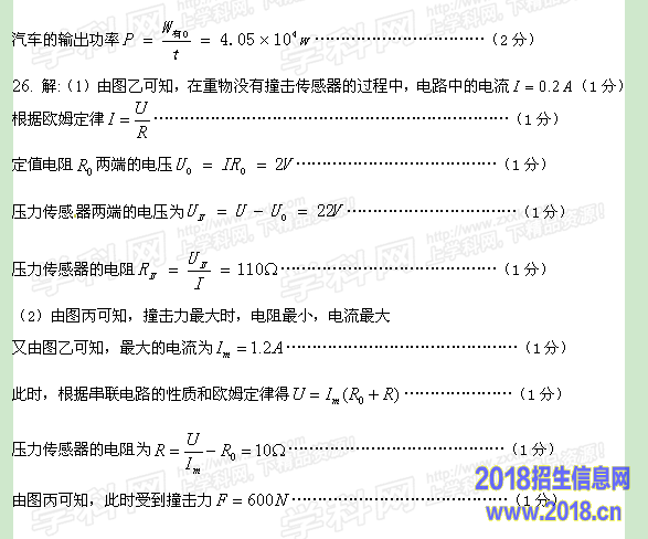 26.(9分)如图甲所示,在2015年某工厂要研发一种新型材料,要求对该材料的承受的撞击力进行测试。在测试时将材料样品(不计质量)平放在压力传感器上,闭合开关,由静止自由释放重物,经撞击后样品材料仍完好无损。从重物开始下落到撞击样品的这个过程中,电流表的示数