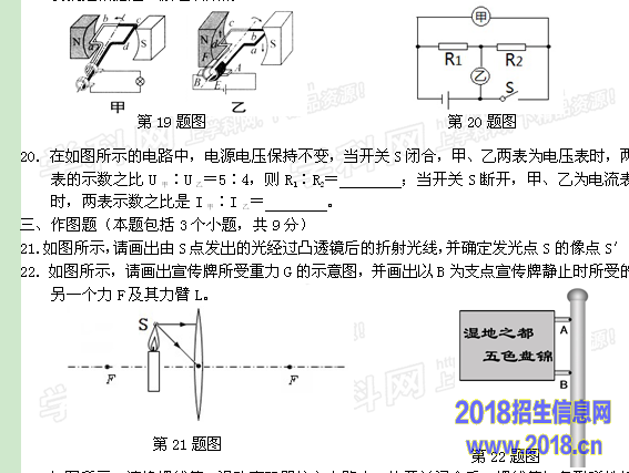 19.如图所示,是电和磁知识中的两个重要实验装置,甲是研究在磁场中转动的线圈产生电流的情况,这种现象是 现象;乙是研究通电线圈在磁场里受力转动的现象, 机就是根据这一原理制成的。