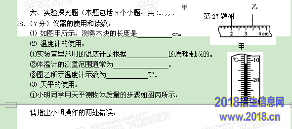 ⑴ 如图甲所示,测得木块的长度是 cm。