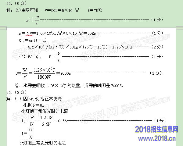 ⑴ 将水加热到设定的最高温度时水吸收的热量。