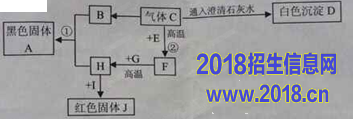 27.(8分)A—J都是初中化学常用的物质。其中B、E、H、J是单质,其余均为化合物,气体C可用于灭火。它们相互间的转化关系如下图所示(部分反应物、生成物及反应条件已略去)。