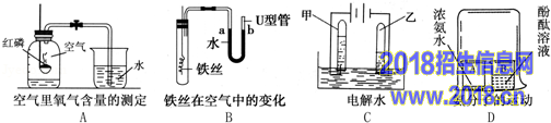 (3)C实验产生氧气与氢气的体积比约为 .?