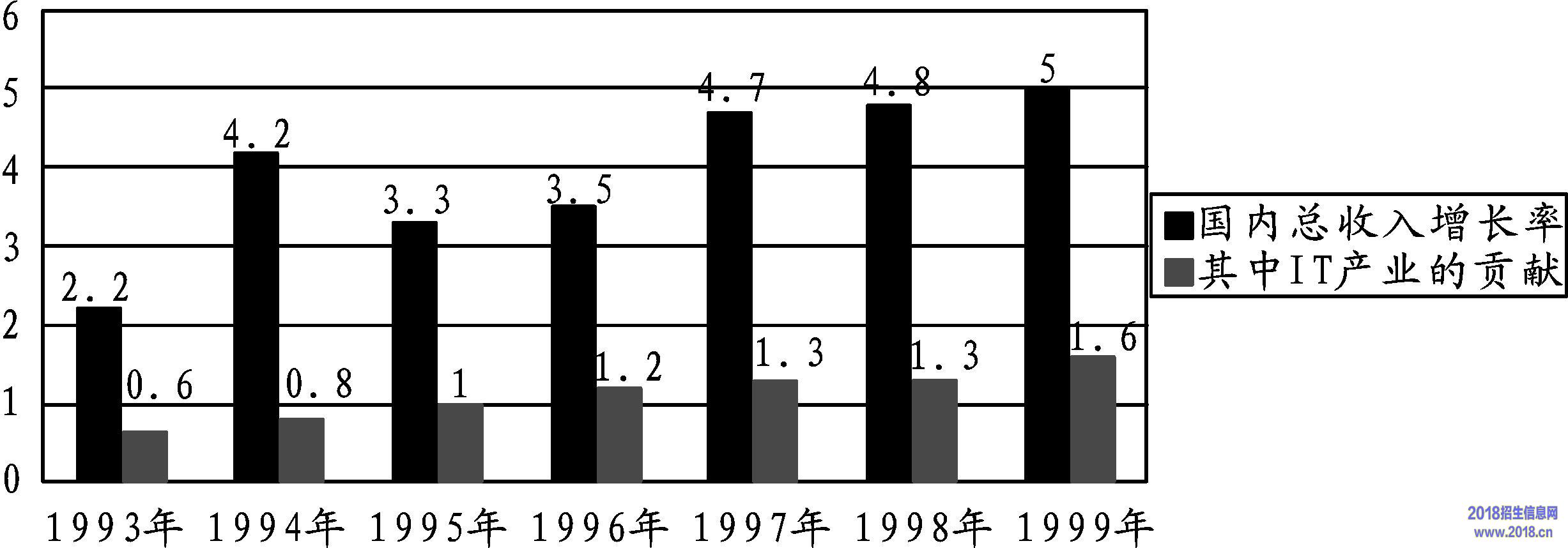 ①经济增速领先其它国家 ②信息技术产业对经济增长的贡献越来越大