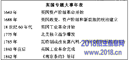 26. (20分)下面是杨洋同学在复习时归纳的一部分英国专题大事年表。