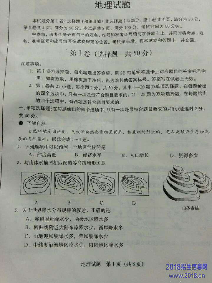 2016年巴中中考文综试题及答案
