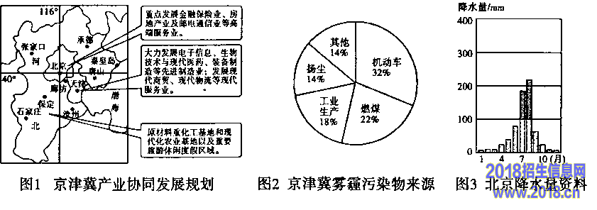 (3) 依据京津冀产业协同发展规划(图1),大型跨国银行的总部应该布局在________;