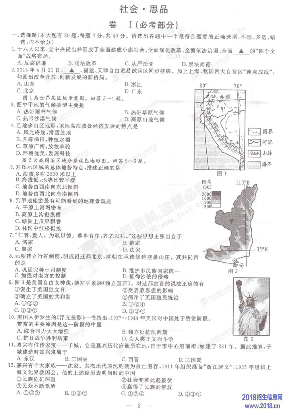 2015年浙江省嘉兴市中考社会思品试题(扫描版,含答案)