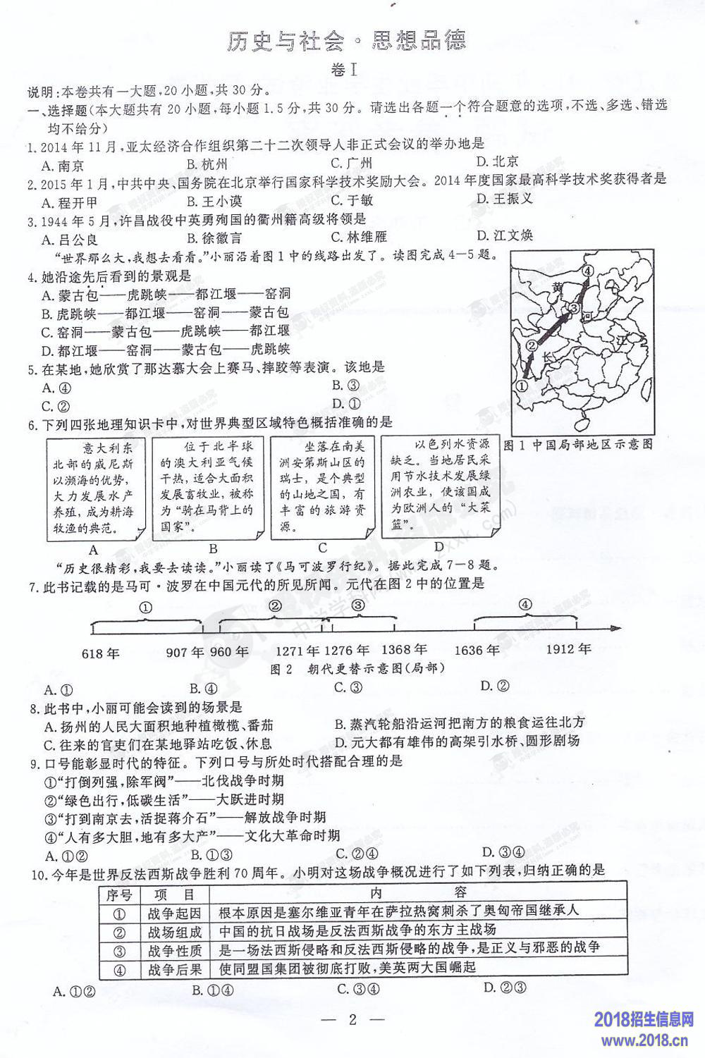 2015年浙江省衢州市中考历史与社会思品试题(扫描版,含答案)