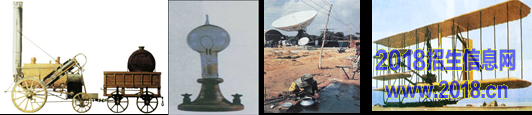 ①火车机车 ②灯泡 ③卫星地面站 ④飞机