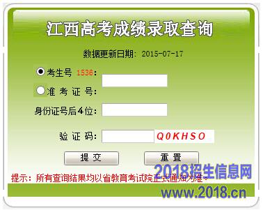 2015江西一本录取结果查询系统(江西省教育考试院)