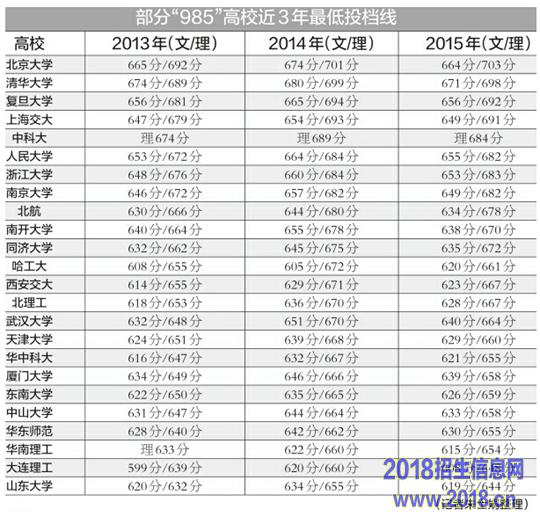 以“985”高校为例,从投档最高分与最低分来看,分差大都保持在20分以内。例如像中国科技大学,今年投档最高分693分,最低分也达到了684分,分差仅有9分,而去年的分差为8分、前年为14分。复旦大学今年理科投档最高分是699分,最低分也达到了692分,分差为7分,去年的分差为6分、前年是10分。而省内的招生大户山东大学,理科招1460人,最高分是679分,最低分也达到了644分,分差为35分,去年为32分、前年为43分,而在2012年,分差更是高达96分;文科同样如此,今年山大文科招400人,最高分是652分,最低分为619分,分差为33分,去年则为25分、前年则为31分,2012年则为79分。