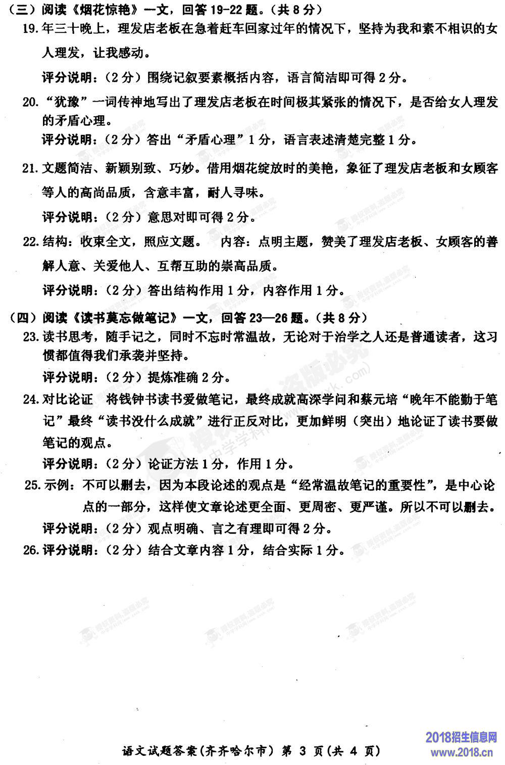 2015年黑龙江省黑河市、齐齐哈尔市、大兴安岭中考语文试题(word版,含答案)