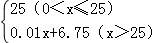当25<x≤50时.yA=yB,即0.01x+6.75=10,解得;x=32.5,