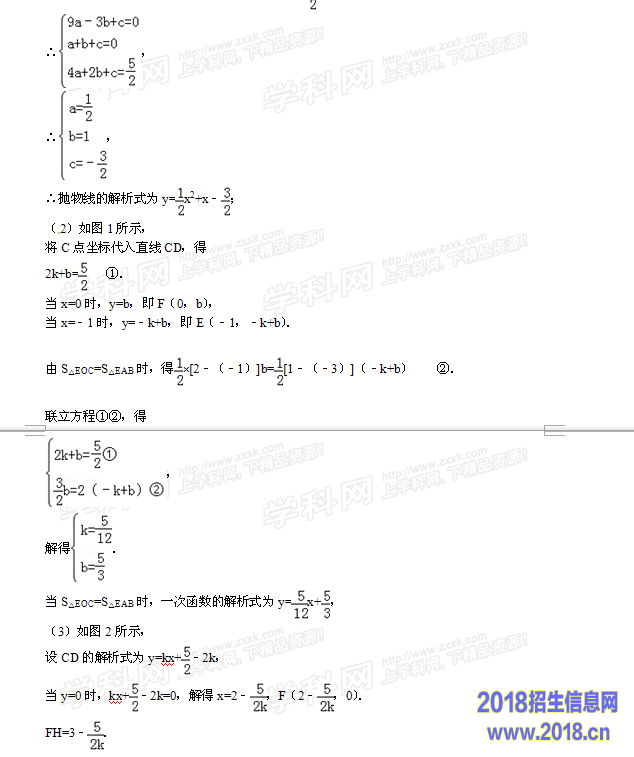 分析:(1)把A(﹣3,0),B(1,0),C(2,)代入y=ax2+bx+c,解方程组即可;
