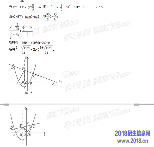 (3)设CD的解析式为y=kx+﹣2k,当y=0和x=﹣1时,求出FH、EH、AH,根据tanα>tanβ列不等式可求出k的取值范围.