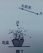 15.如图7所示,小张喜欢在家中养花,为了使客厅里花盆中的花能茁壮成长,小张想让室外太阳光照射到盆中花上的B处,请你在图中把光路补充完整并画出过A点放置的平面镜