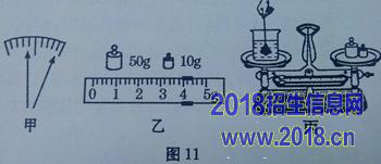 19.小明同学用天平、细线、烧杯、水()来测定某工艺品的密度,他设计的实验过程如图11所示: