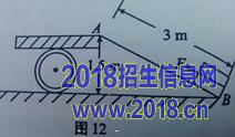 22.(4分)如图12所示,一卡车车厢车底底板距地面1.5m高,小张把一块3m长的钢板AB搭在车厢底板上,构成一个斜面。他通过这个斜面,用F=600N的力,把一个大木厢从B处推到A处的车上,已知木箱重为1000N。求:
