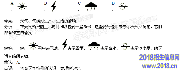 1.(2015•沈阳)天气状况影响人们的生产和生活.下列天气符号所示天气适合晾晒衣物的是( )
