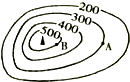 4.(1分)读等高线地形图,图中A、B两点的相对高度是( )