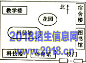 解答: 解:地图上的方向有不同的表示方式,在有指向标的地图上,用指向标指示方向,指向标箭头的指向一般为北方;据此读图可知,教学楼位于宿舍楼的正西方向.