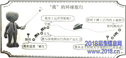12.(1分)自拍杆和其他销往巴西的产品汇合后,从宁波出发到巴西的里约热内卢,最适宜的运输方式是( )