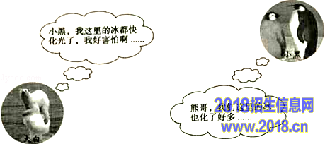 解答: 解:地球变暖的一个征兆是南北极地区永久冰雪的快速消融.跟踪考察表明,在1978﹣1996年间,北极地区的冰盖面积缩小了约6%,即每年实际减少约3万平方千米;冰层的平均厚度也由原来的310厘米减少到180厘米.北极熊等极地动物的生存空间变得越来越拥挤.20世纪90年代以来,南极洲冰山脱离南极大陆的速度与日俱增,南极大陆冰盖的体积迅速缩小.