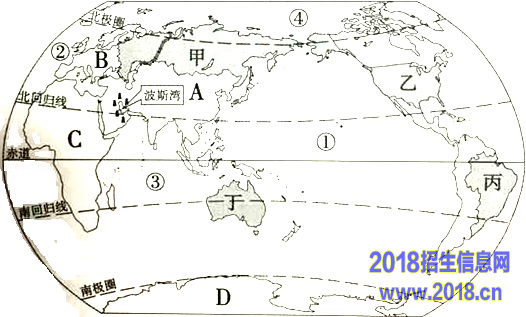 (2)1519年,麦哲伦船队环球航行时,进入一个风平浪静的大洋,麦哲伦把这个大洋命名为太平洋,这个大洋是图中的 (填数字序号).