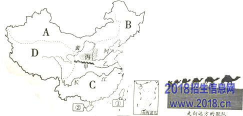 (2)C地区主要耕地类型是 (水田或旱地);驼队景观出现在 地区(填字母),此地区最突出的自然特征是 .