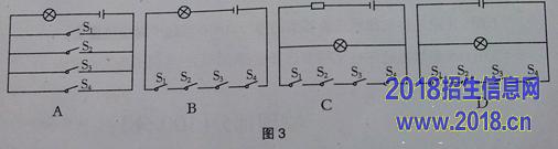 5.小轿车上安装一个指示灯,用来提醒司机或乘客车门是够关好。四个车门中只要有一个车门没关好(相当于一个开关断开),该指示灯就会发光,图3中符合上述要求的电路图是