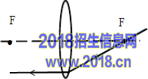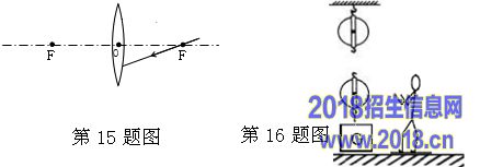 15.在该图中,画出光线经凸透镜折射后的光路图。