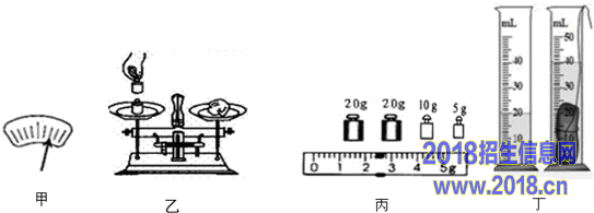 (3)改正错误后,小明正确测出物块的质量,所用的砝码和游码位置如图丙所示,物块的体积如图丁所示,则该物块的质量是 g,密度 g/cm3。