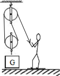 16.一位同学站在地面上,要利用如图所示的滑轮组将重物提升到10m高的楼上,请你帮他在图中画出符合要求且省力的绳子绕法。