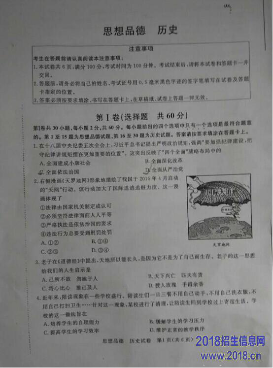2016年南京中考政治试题及答案