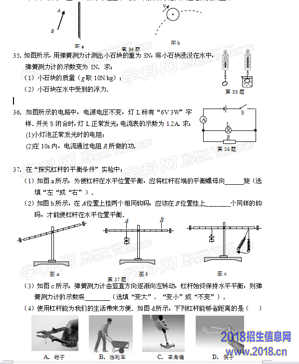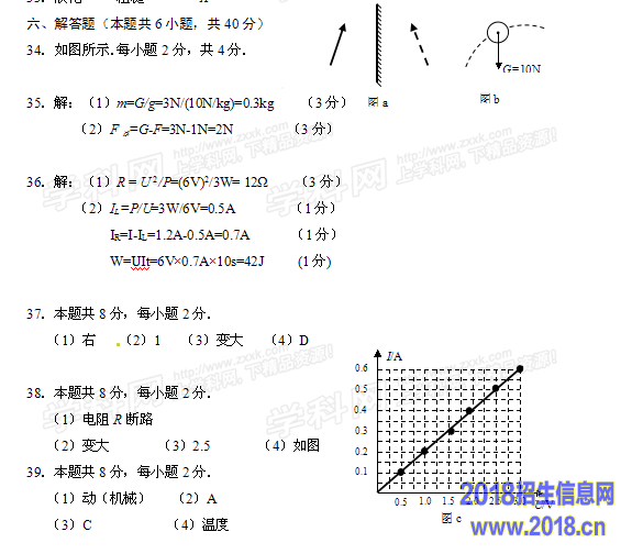 三、物理解答题(34题4分,35、36题各6分,37~39题各8分,共40分.解答35、36题应有解题过程)[来源:学科网]