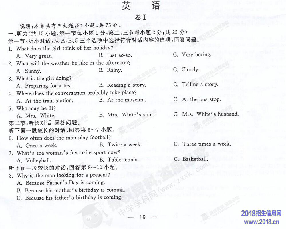 2015年浙江衢州中考英语试题及答案(图片版)