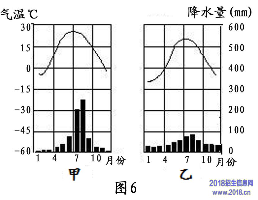 (1)图6中甲图所示气候类型是 。